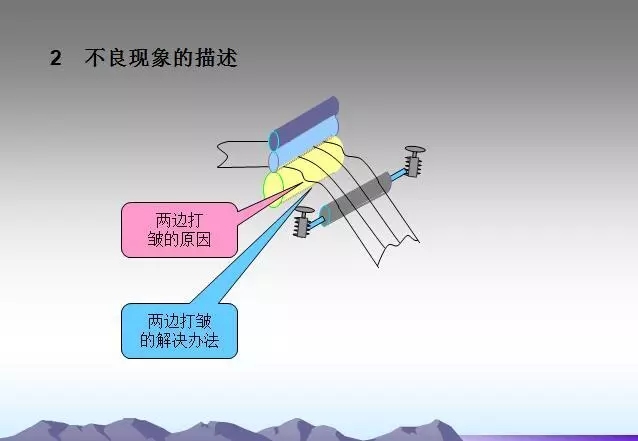 過(guò)輥之間平行度超差會(huì)造成箔帶打皺,須仔細(xì)檢查究竟是垂直投影面不平行還是水平面不平行,然后加以調(diào)整